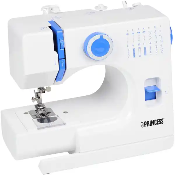 Freiarm-Nähmaschine > 14 Stichmuster > Knopflochfunktion > Spulenfunktion > Rückwärtsnähen > LED-Leuchte > Einstellbare Fadenspannung > Automatischer Geschwindigkeitsregler > Automatische Einfädelfunktion > Fadenschneider > 9 W > Inkl. Schutzhaube, Zwillingsnadel und Zubehör