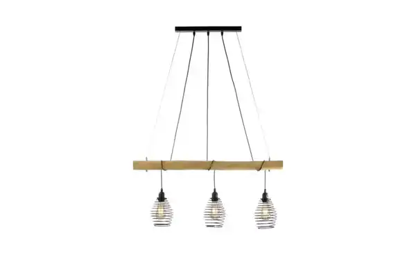 Paul Neuhaus Pendelleuchte, 3-flammig, Eukalyptus-Holz/ Metall