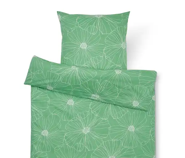 Perkal-Bettwäsche, Normalgröße Farbe: Grün mit weißem floralem Alloverprint Material: 100% Baumwolle Maße: 1 Kissenbezug ca. 80 x 80 cm 1 Bettbezug ca. 135 x 200 cm Waschbar bei 60 °C – allergikerfreundlichSchnelles Beziehen mit Reißverschluss Besonders weich, leicht und glattAus reiner, weicher BaumwolleStrapazierfähig durch dicht gewebte FasernTemperaturausgleichend