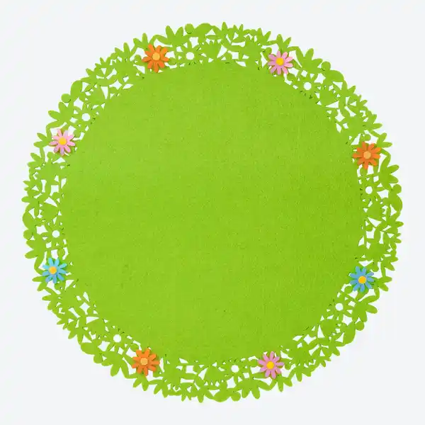 Dieses Platzset von Home mit Blumendesign bietet mit seinen filigranen Applikationen ein dekoratives Highlight für Ihren Esstisch. Die 3 mm dicke Filzstruktur sorgt für eine angenehme Haptik und schützt empfindliche Oberflächen zuverlässig. Modernes Platzset mit Blumendesign Runde Form mit dekorativer Blütenapplikation 3 mm dicke Filzstruktur