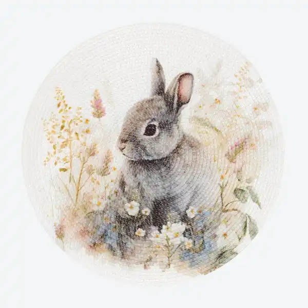 Dieses Platzset von Home verbindet dekoratives Design mit praktischer Alltagstauglichkeit. Das Platzset überzeugt durch den ansprechenden Aufdruck und sorgt für einen schönen Akzent auf jedem Tisch. Das strapazierfähige Material ist besonders pflegeleicht und bleibt formstabil. Modernes Platzset mit Hasen-Aufdruck Runde Form für jeden Esstisch geeignet Pflegeleicht und formstabil