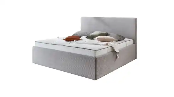 Das Polsterbett CALGARY kombiniert ein attraktives Design mit praktischem Stauraum. Gehüllt in einen Cordbezug in edlem Silber ist es nicht nur besonders trendig, sondern gleichzeitig zeitlos elegant. Passend hierzu erscheint es mit einem gepolsterten Kopfteil, ebenfalls in silberfarbenem Cord. Die schwarzen Füße fügen sich in das moderne Erscheinungsbild dieses Polsterbetts nahtlos ein. Das Bett CALGARY macht Ihr Schlafzimmer zu einem stilvollen Rückzugsort für entspannte Stunden und erholsame Nächte.