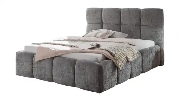 Unser Polsterbett SANDRIN verwandelt jedes Schlafzimmer in eine Wohlfühloase. Gehüllt in einen Chenille-Bezug in elegantem Grau fühlt es sich angenehm weich an und hat gleichzeitig eine sanft schimmernde Erscheinung, die es zu einem optischen Highlight im Schlafzimmer macht. Das gepolsterte Kopfteil lädt zum entspannten Lesen am Abend ein und die großen Steppungen strahlen eine einladende Gemütlichkeit aus.