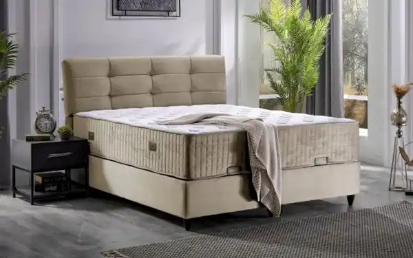 Ausführung mit Stoffbezug in beige, Taschenfederkernmatratzen, Belastbarkeit bis zu 130 kg,