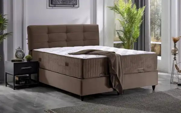 Ausführung mit Stoffbezug in braun, Taschenfederkernmatratzen, Belastbarkeit bis zu 130 kg,