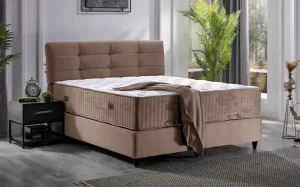 Ausführung mit Stoffbezug in hellbraun, Taschenfederkernmatratzen, Belastbarkeit bis zu 130 kg,