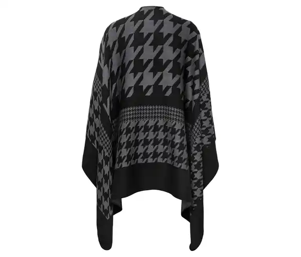 Poncho mit Hahnentritt-Jacquard Farbe: Schwarz-grau im Hahnentritt-Jacquard Material: 80% Polyester, 20% Viskose Maße: Ca. 155 x 135 cm Weiche und wärmende Viskose-Mischqualität Vorne und an den Seiten offenMit Antistatik-AusrüstungOne SizeDieser Poncho beinhaltet Fasern aus nachhaltigem Holz.