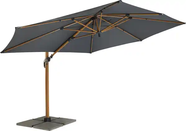Ein beeindruckendes Highlight für Ihren Garten, das Design und Funktionalität perfekt miteinander vereint! Mit einem Durchmesser von 400 cm bietet dieser Rundschirm Schutz vor der Sonne und verleiht Ihrem Outdoor-Bereich eine zeitlose Eleganz. Der UV-Schutz bis zu +80 gewährleistet, dass Sie unbeschwert die warmen Tage im Freien genießen können, ohne sich den schädlichen UV-Strahlen auszusetzen. Die Aufspannung erfolgt spielend leicht dank der praktischen Kurbel, die eine mühelose Handhabung ermöglicht. Die hochwertige Sonnenschirmbespannung aus 180 g/m² Polyester gewährleistet nicht nur Langlebigkeit, sondern schafft auch eine angenehme Atmosphäre unter Ihrem neuen Schattenspender.Der Schirmmast, mit einem Durchmesser von Ø 9,3 cm, präsentiert sich in pulverbeschichtetem Aluminium mit einer ansprechenden Holzoptik. Dies verleiht dem Tarifa nicht nur Stabilität, sondern auch eine warme und natürliche Ausstrahlung. Erleben Sie den Komfort verschieden einstellbarer Neigungswinkel, um den