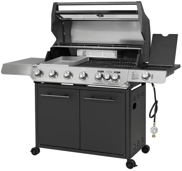 Ein echtes Flaggschiff für ambitionierte Grillmeister ist der Primaster Gasgrill Cody mit 6 Brennern. Mit seiner beeindruckenden Grillfläche von 95 x 48 cm bietet er außergewöhnlich viel Platz und ist damit perfekt für große Grillrunden, Familienfeste oder anspruchsvolle BBQ-Events geeignet. Ausgestattet mit sechs einzeln regulierbaren Hauptbrennern, davon zwei leistungsstarke Brenner mit Powerzone-Ausstattung, überzeugt dieser Gasgrill mit maximaler Hitzeleistung und präziser Temperaturkontrolle. Steaks lassen sich so scharf anbraten, während auf den übrigen Zonen weiteres Grillgut gleichzeitig schonend gegart wird. Für noch mehr Vielfalt sorgt der Infrarot-Heckbrenner, der sich ideal für die Zubereitung von Drehspießgerichten eignet und gleichmäßige, saftige Ergebnisse liefert. Ergänzt wird das Ausstattungspaket durch den Infrarot-Seitenbrenner, auf dem Beilagen, Saucen oder Pfannengerichte bequem zubereitet werden können. Ob knuspriges Hähnchen vom Spieß, perfekt gegrillte Steaks oder kreative BBQ-Menüs für viele Gäste – der Primaster Gasgrill Cody meistert jede Herausforderung souverän. Ein leistungsstarker Premium-Allrounder, der keine Wünsche offenlässt.