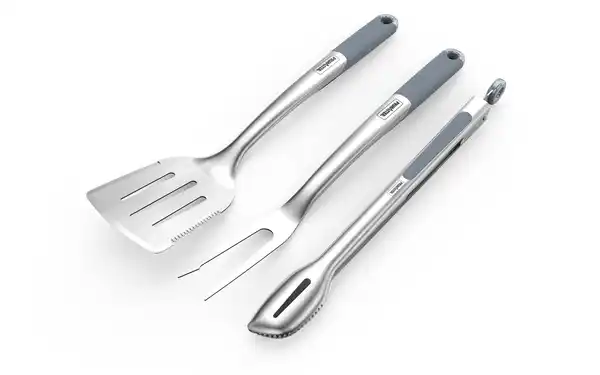 Mit unserem hochwertigen Grillbesteck-Set von der Marke Primaster, bestehend aus Grillzange, Grillwender und Grillgabel, wird jede Grill-Session zum Erfolg! Hergestellt aus robustem Edelstahl, sind diese Werkzeuge besonders langlebig und hitzebeständig.Maße Grillzange: ca. 43 cm (L)Maße Grillwender: ca. 46 cm (L)Maße Grillgabel ca. 46 cm (L)Material: Edelstahl mit thermoplastischen KunststoffgriffDie langen, hitzebeständigen Griffe sorgen für einen komfortablen HaltHerstellerinformationen: Globus Fachmärkte GmbH & Co. KG | Zechenstraße 8 | 66333 Völklingen, Deutschland | Website: www.globus-baumarkt.de