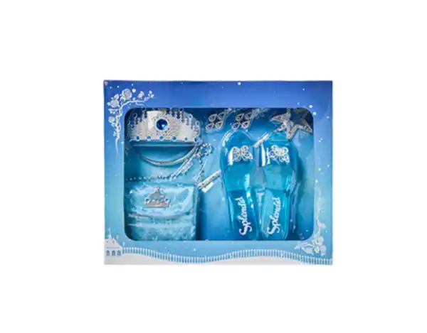 7-teilig, bestehend aus 1 Paar Schuhe, 1 Krone, 1 Paar Ohrringe, 1 Prinzessinenstab und 1 Tasche, verschiedene Designs, je
