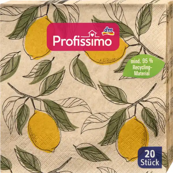 Profissimo Servietten "Zitrone" aus Recyclingmaterial (33x33cm), 20 St