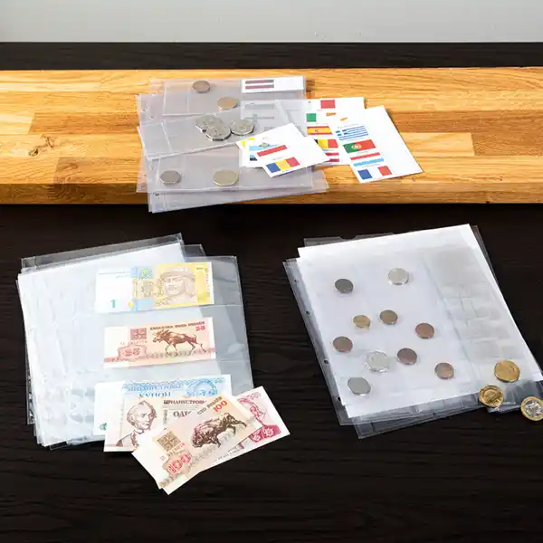- Münzhüllen im 5er-Set: Unterschiedliche Sets für 12 – 48 Münzen, Ø von 17 mm bis 44 mm, Hüllenformat 188 x 212 mm