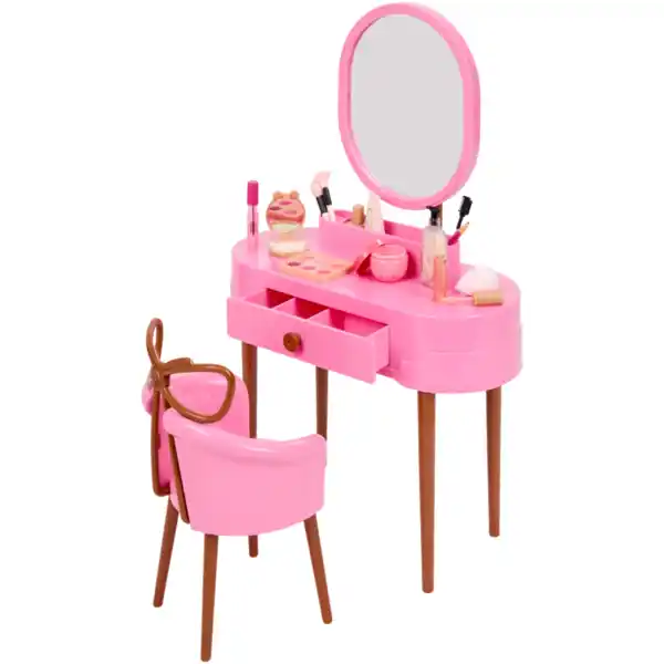 Verwandle jedes Puppenhaus in einen Salon: Dieser zauberhafte Frisiertisch lädt zu kreativen Make-overs ein. Mit Spiegel, Ablage und liebevollen Details erhalten deine Puppen eine erstklassige Beauty-Behandlung – perfekt für stundenlangen Spielspaß!