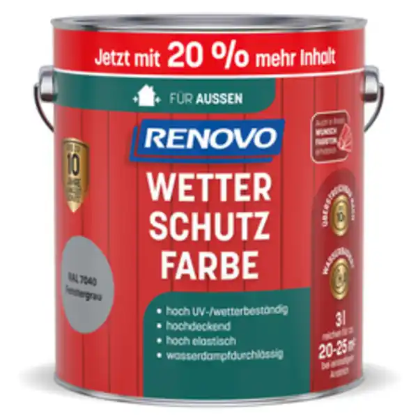 RENOVO Farbe, Wetterschutzfarbe, 3 L, fenstergrau
