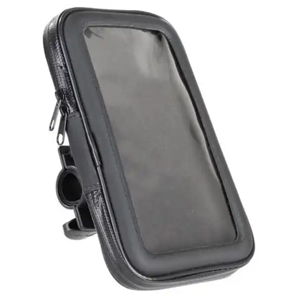 \n- Je Stück - Mit Touchscreen-Sichtfenster - Abnehmbare Smartphone-Tasche mit 2-Wege-Reißverschluss - Individuelle Positionierung durch 360° drehbare Halterung - Inkl. Regenschutzhülle – schützt Ihr Smartphone gegen Wasser, Staub und Schmutz - Passend für Lenker mit einem Durchmesser von 20-28 mm - Für Smartphones bis 6 Zoll - Inkl. Quick-Release-Bracket - Inkl. 2 Einlegeplatten aus Schaumgummi für einen sicheren Halt des Smartphones in der Tasche
