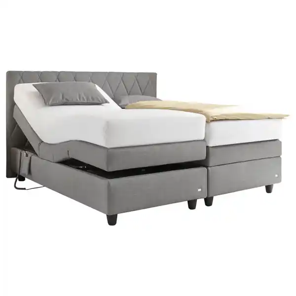 Schaffen Sie die ideale Atmosphäre zum Ausruhen mit diesem RUF Boxspringbett (Liegefläche: ca. 160 x 200 cm) in Grau inklusive Matratze. Maße und weitere Infos in der Übersicht Liegefläche: ca. 160 x 200 cm (B x L) Gesamtmaße: ca. 165 x 209 x 117 cm (B x L x H) Liegehöhe: ca. 70 cm Die Komforthöhe erleichtert das Aufstehen und Hinlegen. Boxhöhe: ca. 40 cm Matratzenhöhe: ca. 20 cm Fußhöhe: ca. 10 cm Vertrauen Sie auf die Box mit Kaltschaumkern und Tonnentaschenfederkern als Basis der Mehrlagen-Boxspringstruktur. Die 7-Zonen-Matratze samt waschbarer Synthetikfaser-Hülle fördert mit ihrem Tonnentaschenfederkern höchst punktelastischen Komfort, weil die bauchigen, einzeln in Stofftaschen befindlichen Federn eine präzise Druckentlastung und vorzügliche Stützkraft gewähren. Freuen Sie sich auf die unterschiedlichen Matratzenhärtegrade: 'mittel' empfehlenswert für Personen bis ca. 80 kg und 'fest' vorgesehen für ein Körpergewicht ab ca. 80 kg. Beim traditionsbewussten Label RUF stehen innovative Kreationen und die Verbindung von Handwerk mit aktuellen Technologien gleichermaßen im Fokus. Durch die Fertigung mit einem Synthetikfaser-Bezug (100 % Polyester) unterstreicht das geschmackvolle Bett mit einem unaufdringlichen Kolorit in Grau einen modernen Look. Die glatte Webstoff-Oberfläche hat eine feine, ebenmäßige Textur, die gleichermaßen weich und gemütlich ist. Das gepolsterte Kopfteil samt Karosteppung verleiht dem Möbel ein heimeliges Finish. Runde Füße in Schwarz werten das Design stylish auf. In diesem RUF Boxspringbett (ca. 160 x 200 cm) in Grau mit Matratze, gepolstertem Kopfteil und motorischer Verstellbarkeit ist Relaxen angesagt – gönnen Sie sich Ihre ganz persönliche