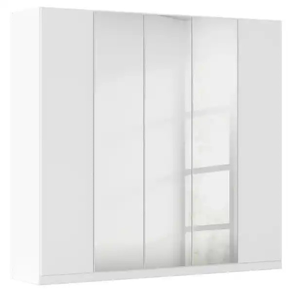 Dieser ca. 226 x 210 x 54 cm (B x H x T) große Rauch Dreh- und Falttürenschrank (3-türig) mit Spiegel übernimmt als zeitlos-modernes Möbel gerne eine führende Rolle in Ihrer Einrichtung. Gerade Kanten zeichnen sein minimalistische Design in Alpinweiß aus, das sich optisch auf das Wesentliche konzentriert. Da der Schrank made in Germany grifflos ist, öffnen Sie ihn per Push-to-open-Funktion. Von vorne betrachtet befindet sich rechts eine Drehtür. Nebenan sorgen die Falttüren dafür, dass Sie vor dem Kleiderschrank weniger Platz benötigen, als bei Modellen, deren offenstehende Türen breiter sind und deshalb deutlich weiter in den Raum hineinragen würden. 3 Kristallspiegel (B x H: jeweils ca. 43 x 200 cm) bieten Ihnen die Möglichkeit, sich von Kopf bis Fuß zu betrachten. Im Inneren stehen Ihnen 3 Kleiderstangen und 3 höhenverstellbare Fachböden zur Verfügung, die den vorhandenen Stauraum bedarfsgerecht aufteilen. Darüber hinaus gibt es zur Aufbewahrung modischer Basics praktischerweise 6 Innenschubladen. Ihr neuer, mit dem Goldenen M ausgezeichneter Dreh- und Falttürenschrank (5-türig) mit Spiegel verleiht Funktionalität einen aktuellen Look!