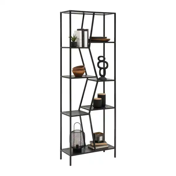 Mit dem Regal AMANA in Schwarz bringst du stilvolle Ordnung in dein Zuhause. Das Regal von MÖMAX überzeugt durch sein modernes Design und seine Funktionalität. Es bietet dir viel Stauraum für Bücher, Dekoartikel und vieles mehr. Die sieben Einlegeböden, bieten mit Breiten von 3 x ca. 22 cm, 3 x ca. 32 cm und ca. 57 cm viel Platz für deine Lieblingsstücke. Jeder Boden ist bis ca. 3 kg belastbar. Das Regal AMANA hat eine maximale Belastbarkeit von ca. 20 kg. Das Regal ist aus Holz, Metall und Holzwerkstoff gefertigt. Die Oberfläche ist lackiert und pulverbeschichtet. Die Füße in Flachrohrform sind ca. 10,5 cm hoch. Die Abstände zwischen den Einlegeböden betragen ca. 30/44.5/47 cm. Mit seinen Maßen von ca. 60 x 170 x 26 cm (B x H x T) passt das Regal ideal in dein Wohnzimmer.