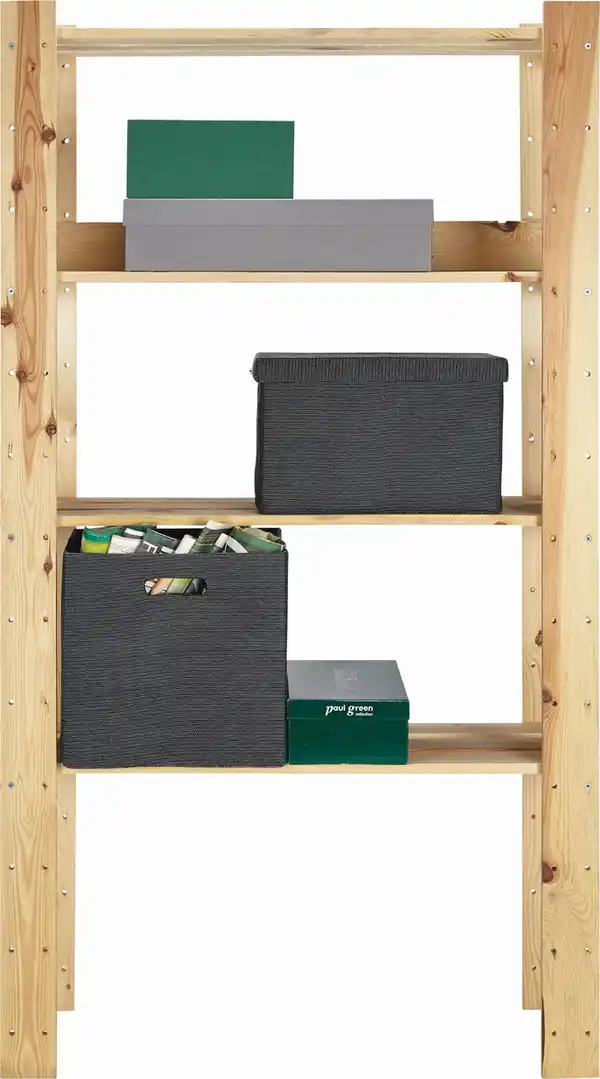 Dieses Regal aus unbehandeltem und geschliffenem Kieferholz überzeugt durch sein robustes Erscheinungsbild und großzügiges Platzangebot. Es bietet viel Stauraum auf 4 offenen Fächern mit Stützleiste, genau richtig für Ihren Keller oder Vorratsraum.