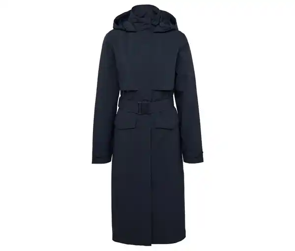 Regentrenchcoat Farbe: Navy Material: 100% Polyester Maße: Gesamtlänge ca. 114 cm (Gr. 40) Passform: Slim Fit Wasserdicht, winddicht und atmungsaktiv durch DryProof™-TechnologieObermaterial hält einer Wassersäule bis 5.000 mm standWasserabweisend durch umweltschonende evoPel-ImprägnierungOptimale Bewegungsfreiheit durch verdeckten 2-Wege-ReißverschlussTaftfutterVerstellbare Kapuze 2 KlappentaschenVerstellbare Ärmelweite durch DrucknöpfeMit Gürtel zur WeitenregulierungSchmal geschnitten