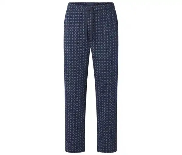 Relaxhose Farbe: Dunkelblau mit hellblauem Alloverprint Material: 100% Baumwolle Maße: Innenbeinlänge ca. 77 cm (Gr. L 52/54) Passform: Regular Fit Weiche Single-Jersey-Qualität aus reiner BaumwolleElastischer Bund mit Bindebändern2 seitliche Taschen