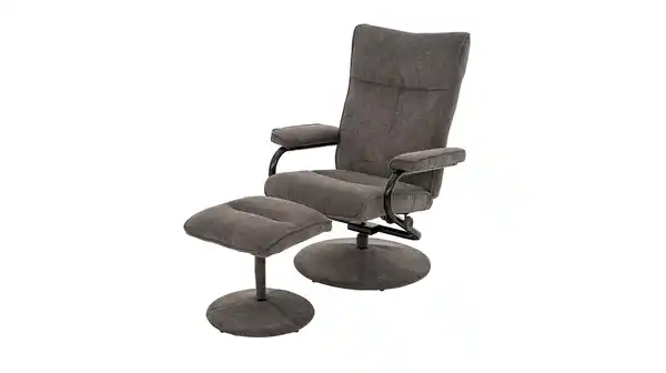 Relaxsessel mit Hocker grau Microfaser - drehbar - MORENA