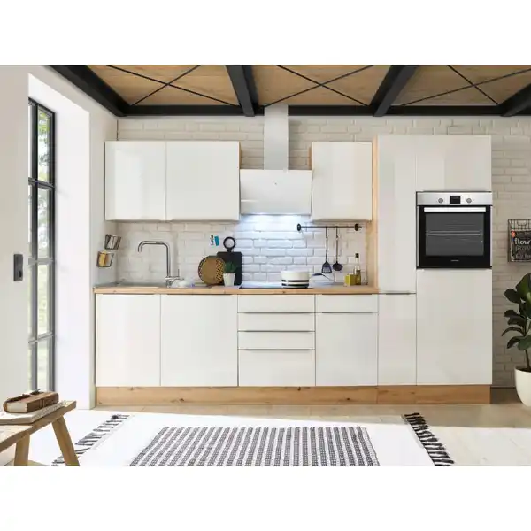 Respekta Küchenblock Marleen, Eiche Artisan, Weiß Hochglanz, Kunststoff, 1 Schublade(n),4 Schublade(n) Schubladen, links montierbar, rechts montierbar, nur wie online abgebildet bestellbar, 310 cm,
