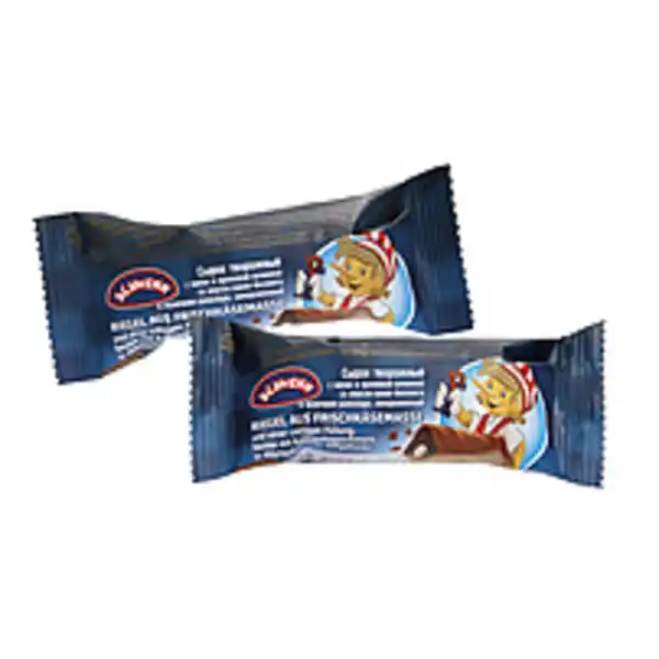 Riegel aus Frischkäsemasse und einer cremigen Füllung, beide...