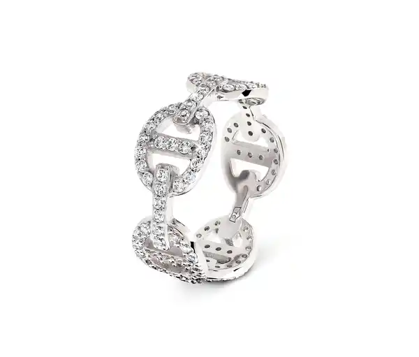 Ring »Schiffsanker« Farbe: Silber Material: 925 Silber, rhodiniert Zirkonia Maße: Breite ca. 8 mm Ø Zirkonia je ca. 1,25 mm Gewicht: Ca. 3,3 g Sterlingsilber, rhodiniertZirkoniabesatz