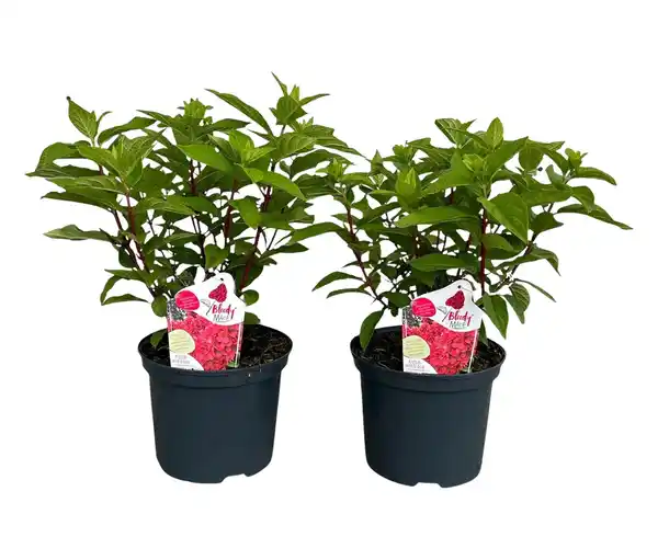 Rispenhortensie »Bloody Marie« Farbe: Blüten cremeweiß, später rosa bis rubinrot Material: Hydrangea paniculata »Bloody Marie« Rispenhortensie Maße: Höhe bei Anlieferung ca. 35–60 cm, je nach Saison Inhalt: Inkl. 5-l-Container mit Erde Sonstige Hinweise: Lieferung in 1 Packstück keine Anwachsgarantie Wir legen großen Wert darauf, dass die Pflanzen in bester Qualität bei unseren Kunden ankommen. Um die Pflanzen während des Transports nicht zusätzlich zu strapazieren, werden sie bei Temperaturen unter –2 °C bzw. über +30 °C nicht versendet. Das könnte ggf. zu Lieferverzögerungen führen. Wir bitten um Ihr Verständnis. Zierstrauch mit auffallend intensiver Rotfärbung der BlütenKompakte, niedrig wachsende Rispenhortensie mit dichter VerzweigungDie großen Blütenrispen öffnen sich cremeweiß und färben sich im Laufe des Sommers intensiv rosa bis rubinrot.Sehr lange Blütezeit
