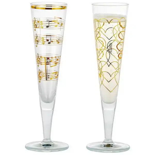 Ritzenhoff Champagnerglas Goldnacht, Gold, Glas, 2-teilig, 205 ml, 7.2x24x7.2 cm, Fsc, Made in Germany, Essen & Trinken, Gläser, Champagner- & Sektgläser
