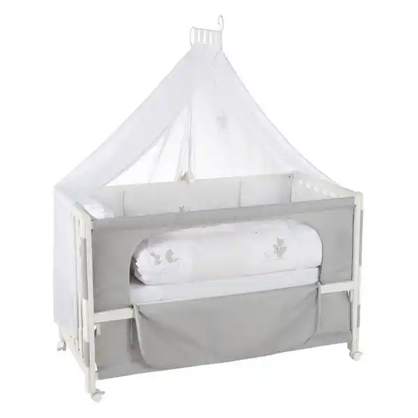 Roba Beistellbett roba Fox & Bunny, Weiß, Grau, Textil, Holzwerkstoff, Schichtholz, 126x157x66 cm, höhenverstellbar, Babymöbel, Babybetten, Beistellbetten