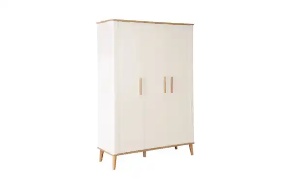 3 Türen inklusive Softclose Funktion, 4 Einlegeböden, 2 feste Böden, integrierte Kleiderstange, neutrale Farbgebung und passend für jedes Kinderzimmer,