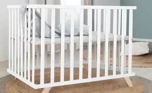 Liegefläche MDF, Grundmaterial Massivholz (Buche), Textil: 80% Baumwolle, 20% Polyester, Füllung: Polyestervlies