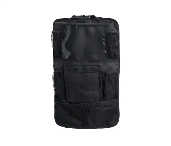 Rücksitz-Organizer Farbe: Schwarz Material: 100% Polyester (recycelt) Folie 100% Polyethylenvinylacetat Schnallen 100% Polyoxymethylene Maße: Ca. 62 x 42 cm Durchsichtige Tasche ca. 27 x 20 cm Ideale Aufbewahrung für z.B. Tablet, Spielzeug oder SchreibwarenSchützt die Sitzrückseite vor BeschmutzungBringt Ordnung ins Auto10 verschiedene FächerEinfache Befestigung durch verstellbare Schnallen an Ober- und UnterseiteMit recyceltem MaterialDieser Rücksitz-Organizer schont Ressourcen.