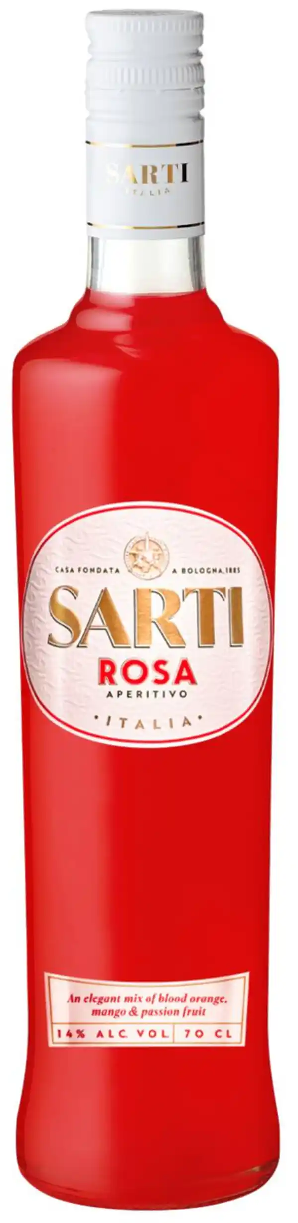 ital. Aperitif mit intensiver Fruchtnote und feiner rosa Farbe, 14 Vol. %