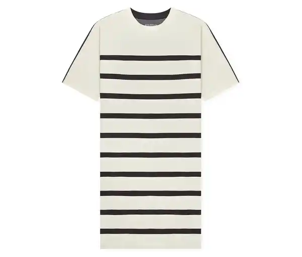 SCHIESSER Nachthemd Farbe: Creme und Anthrazit gestreift Material: 73% Baumwolle, 27% Polyester Sonstige Hinweise: SCHIESSER Stylenummer: 183569-104 Hersteller: SCHIESSER GmbH, Schützenstraße 18, 78315 Radolfzell, Deutschland E-Mail: info@schiesser.com Kurzärmeliges Damen-Nachthemd mit Ringeln in Creme und AnthrazitAus der SCHIESSER Serie »Casual Nightwear«Loose-Fit-Schnitt mit überschnittenen Schultern und etwas verlängertem KurzarmVorder- und Rückseite konträr gestreiftSchnelltrocknendes Material mit kühlender NoteHochwertige Baumwoll-Qualität mit innovativer Mikrofaser aus MaisstärkeUnsere Models tragen Größe M/38