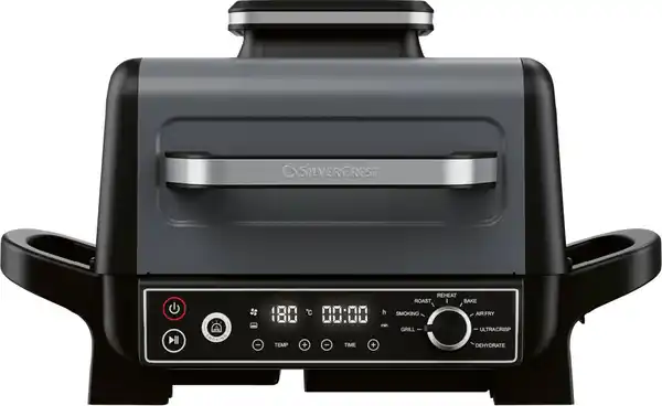 3 in 1: Elektro-Grill, Smoker, Heißluftfritteuse > Auch zum Backen, Braten und Dörren geeignet > 8 voreingestellte Programme > Temperatur einstellbar bis zu 240 °C > Einfache Bedienung per LED-Display > Grillplatte für bis zu 8 Burgerpatties > Frittierkorb ca. 4,7 l (ca. 1.250 g Pommes) > Grillplatte und Frittierkorb antihaftbeschichtet > Platte und Korb spülmaschinengeeignet > Größe ca. B 59 x H 35 x T 46 cm > 2.200 W > Inkl. Holzpellets (400 g) und Pelletschaufel > Inkl. Montagewerkzeug und Rezeptheft