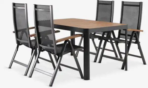 SIRDAL L149 Tisch Hartholz + 4 SIRDAL Stuhl grau