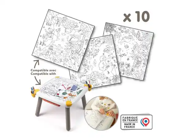 Smoby XXL-Ausmalblätter Die Smoby XXL-Ausmalblätter bieten perfekten Ausmalspaß für alle Kids ab 3 Jahren. Ob als Nachfüllpackung für den Smoby KID Kreativtisch oder als Überraschungsgeschenk; hier ist stundenlange Freude am Malen garantiert! Insgesamt 10 hochwertige Papierbögen im Format 51 x 51 cm zauberhafte und fantasiereichen Abenteuermotive. Mit den Ausmalblättern können Kinder die wundervollen Motive zum Leben erwecken. Sie können die Bilder in ihren Lieblingsfarben ausmalen oder ihrer Fantasie freien Lauf lassen und neue Muster und Designs entwerfen. Die Ausmalblätter sind mit klaren Konturen gedruckt, sodass es für kleine Kinder leicht ist, innerhalb der Linien zu malen. Die großen Motive bieten auch genug Platz für kleine Hände; um kreativ zu werden. Mit Liebe in Frankreich hergestellt. Produktmerkmale ; Altersempfehlung: ab 3 Jahren Warnhinweis: nicht geeignet für Kinder unter 3 Jahren Material: Papier Maße: ca. L 51 x B 51 cm Gewicht: ca. 279 g