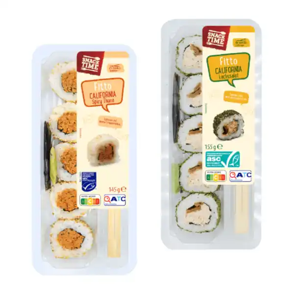 Verschiedene Sorten und Gewichte; inkl. Sojasauce, Meerrettichzubereitung und Essstäbchen; z. T. ASC-/MSC-zertifiziert