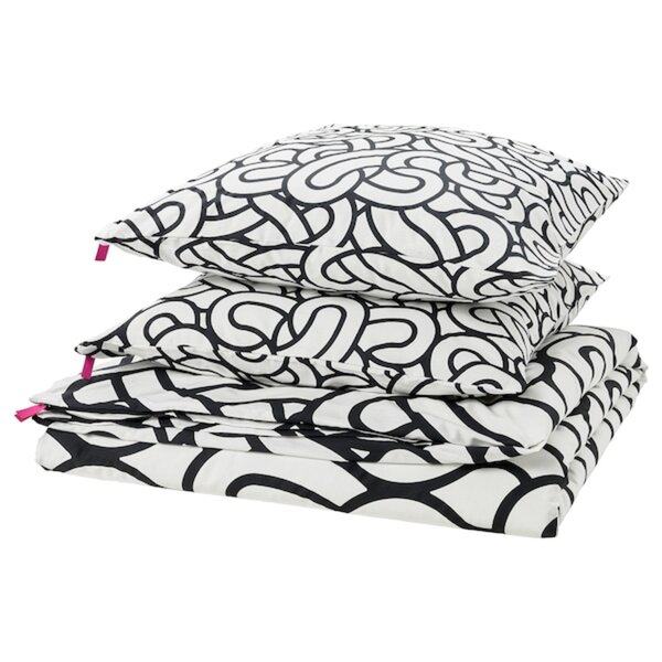 SÖTRÖNN Bettwäsche-Set, 3-teilig, weiß/schwarz/gemustert 240x220/80x80 cm