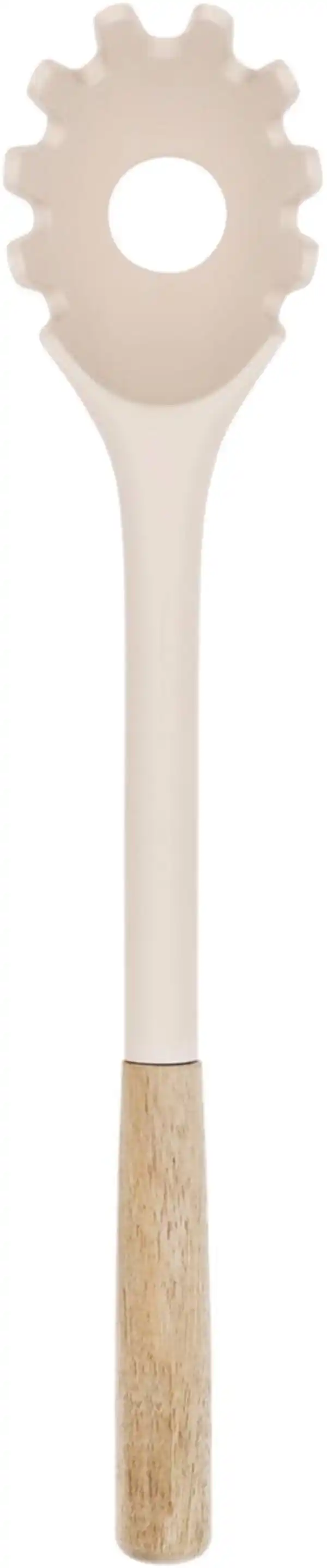 Griff aus Akazienholz > Funktionsteil aus Silikon > Schützt das Kochgeschirr vor Kratzern > Hitzebeständig bis 200 °C
