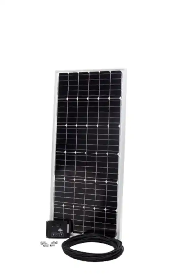 Die mobile, unkomplizierte, solare Stromversorgung für den Freizeitbereich. Das SUNkit(R) Solarstrom-Set AS 80 ist geeignet für den Einsatz in Klein- und Schrebergärten, Wochenendhaus, Berghütten, Reisemobilen, Camping, Boot und überall da, wo keine Steckdose vorhanden ist. Das Set eignet sich zum Laden von Batterien (optional erhältlich), um damit Licht, Radio, Handys, Notebook, Fernseher, SAT-Anlagen und andere kleine 12 V- Verbraucher mit Strom zu versorgen. Wieviel Energie steht zur Verfügung: im täglichen Betrieb bis zu: 320 Wh im Wochenendbetrieb bis zu: 1600 Wh (*in den Sommermonaten)Solarmodul: - 80 Watt monokristallines Solarmodul - aus deutscher Modulproduktion; Qualität „Made in Germany“ - Leistungsgarantie auf eine Leistungsabgabe von 80 %: 20 Jahre - Solarzelle texturiert und antireflexbeschichtet und in weichem EVA-Kunststoff (Ethylen-Vinyl-Acetat) des Modullaminats eingebettet - Spezialgehärtes hochtransparentes Glas - äußerst lichtdurchlässig und robust - Eloxierte Aluminium-L-Profile bilden den verwindungssteifen ModulrahmenLaderegler: - 6 A-Laderegler, 12(24) V - Automatische Spannungsanpassung für den Betrieb in 12/24 V Systemen - Automatische Lastsicherung zum optimalen Schutz der Verbraucher - Automatischer Überlade- und Tiefentladeschutz für die angeschlossene Batterie (bauseits) garantiert auch über lange Zeiträume einen zuverlässigen Betrieb des PV-Systems. - 3 verschiedenfarbige LED’s - Mehrfarbige Info LED informiert über den Systemstatus und zeigt Störmeldungen an.Mittels des im Lieferumfang enthaltenen 10 m Anschlusskabels (1x2,5² mm) und der Batteriepolklemmen (+/-) lässt sich das Solar-Set schnell und einfach montieren und ist somit auch für den Laien geeignet. Ergänzend zu dem SUNkit(R)-Stromset AS 80 sind optional verschiedene Gelbatterien, Halterungen (z. B. für das Gartenhaus oder auf dem Caravan) und Wechselrichter für den 230 V-Betrieb erhältlich.Lieferumfang:1 Solarmodul „AS 80“, 80 Watt, 12 Volt Abmessung: 980x450x35 mm, Gewicht: 5,08 kg 1 Laderegler „SR 6.6“, 6 A Abmessung: 145x100x24 mm, Gewicht: 0,15 kg 10 m Kabel (1x2,5 mm²) 1 Batteriepolklemmen (+/-)