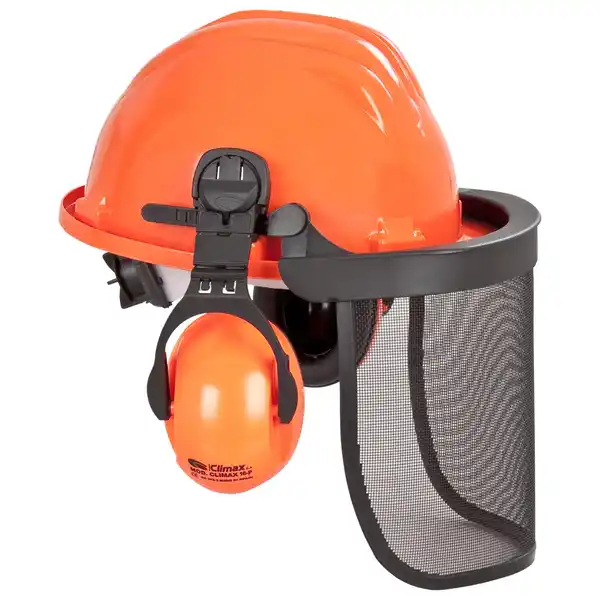 Der Sicherheitshelm ist ein PE-Helm mit 6-Punkt Gurtsystem. Die Größenanpassung kann durch ein Drehrad vorgenommen werden. Ein Schweißband, ein Visier zum Aufklappen, ein Helmbügelgehörschutz mit stufenloser Höhenverstellung sowie eine arretierbare Seitenverstellung sind ebenfalls vorhanden.