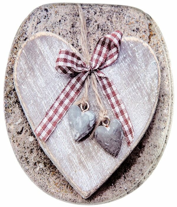 Produktdetails Ausstattung , SoftClose, |Form , oval, |Eigenschaften , hohe Belastbarkeit, | Maße & Gewicht Breite , 37,7 cm, |Länge , 47 cm, | Farbe & Material Farbe , braun, |Motiv , Herzen Holz, |Material , MDF - Mitteldichte Holzfaserplatte, |Material Scharniere , Edelstahl, |Oberflächenoptik , hochglänzend, |