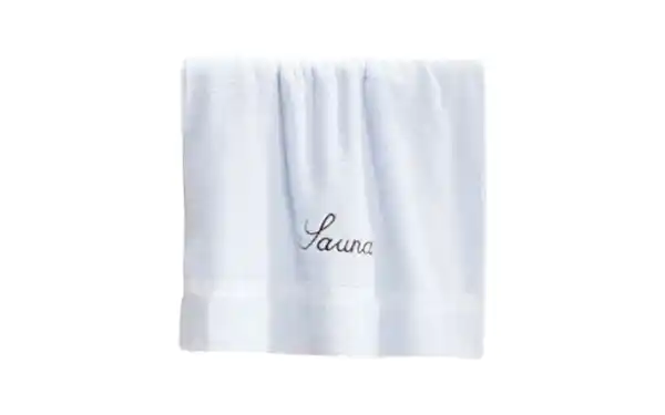 Saunatuch in der Farbe weiß besteht aus 100% Baumwolle.