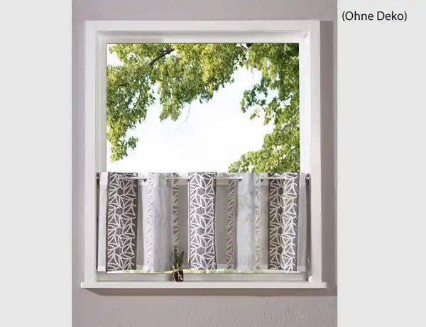 Der halbtransparente jacquardgemusterte Panneaux setzt moderne Akzente in Ihren Räumen. Ob im Wohn- oder Esszimmer, Küche oder Bad, diese längsbetonte Scheibengardine strahlt durch seine gut kombinierbaren Grautöne eine ruhige Wohnlichkeit aus. Da sie nur den unteren Teil des Fensters bedeckt, lässt sie angenehm viel Licht ins Innere des Raumes und bietet gleichzeitig leichten Sichtschutz.