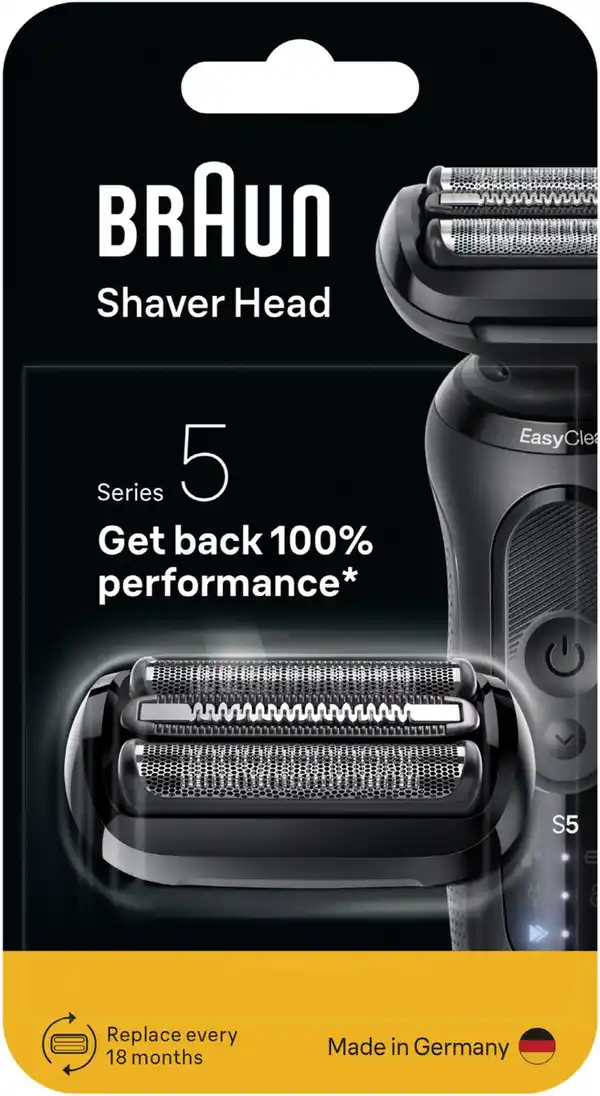 Der durchschnittliche Braun Rasierer schneidet alle 18 Monate 6 Millionen Haare. Dies bedeutet, dass der Scherkopf allmählich verschleißt und die Rasur weniger gründlich und angenehm werden kann. Deshalb empfiehlt Braun, den Scherkopf deines Rasierers alle 18 Monate zu wechseln, um den Rasierer wieder in Bestform zu bringen. Pflege deinen Rasierer, und er belohnt dich im Gegenzug mit optimaler Bartpflege.